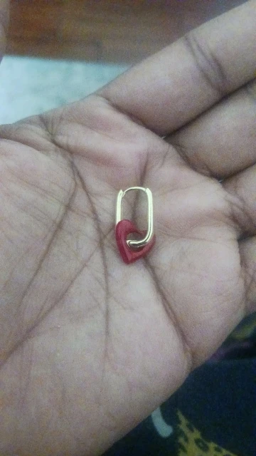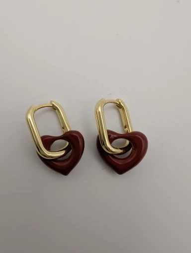 Trendy design — chunky gold hoops with a glossy heart charm.