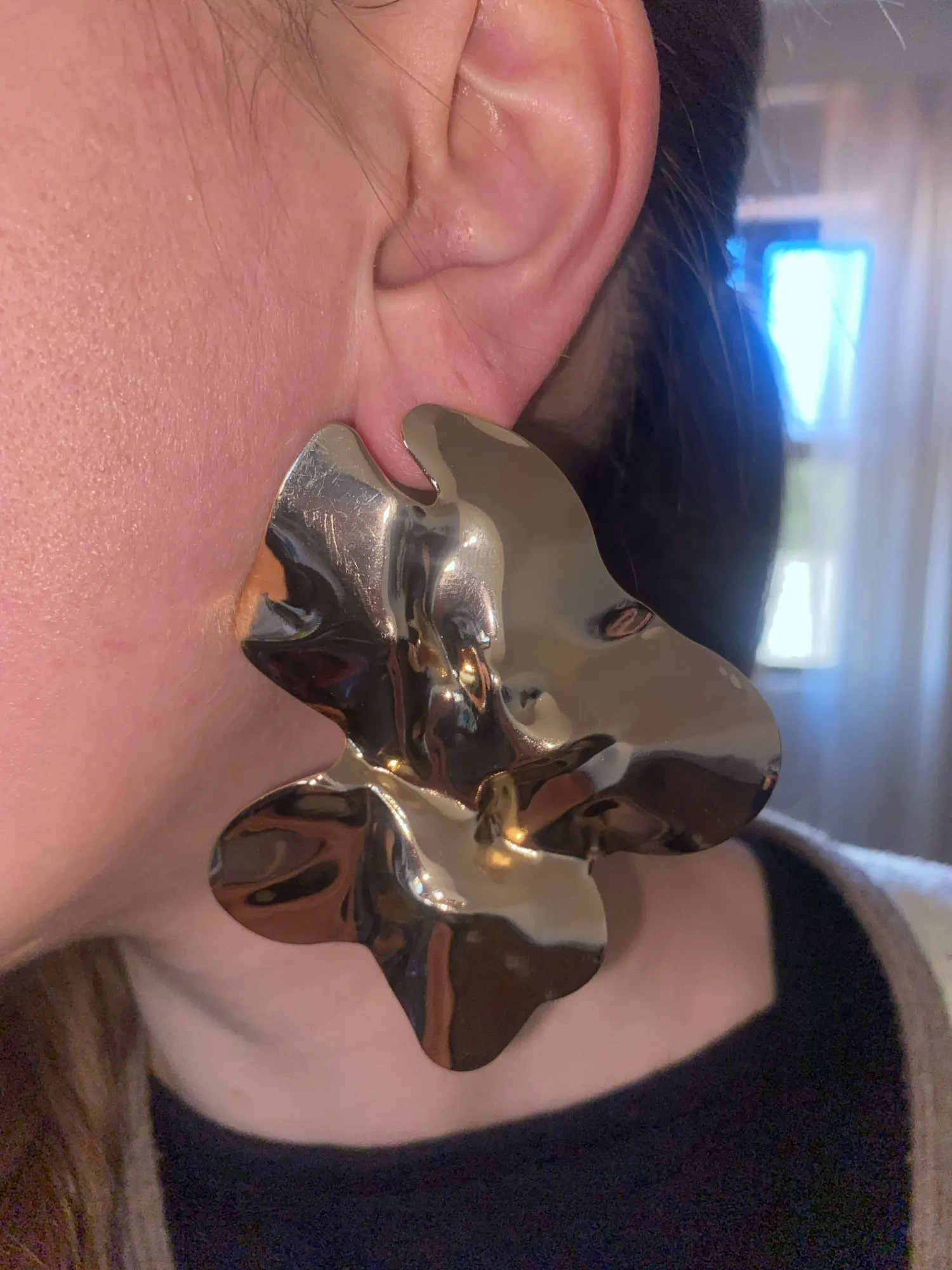Elevate your style with the Golden Bloom Statement Earrings – bold, oversized earrings crafted in a sculptural flower-inspired design. With their radiant gold finish and artistic folds, they are the ultimate accessory for women who dare to stand out.